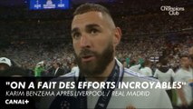 Karim Benzema réagit après la victoire du Real Madrid en Ligue des Champions