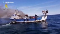 Rescatan a tres pescadores tras el incendio de su barco en la costa de Castellón