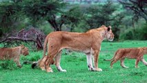 Lioness Walking With Cubs
