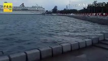 海水涨潮 浪花冲上海堤 民众无视告示 进入工程范围拍照