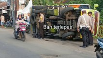 Truk terjungkal di jembatan