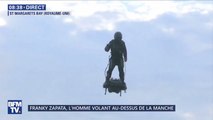 Franky Zapata n'arrive pas à maitriser son flyboard et fait une lourde chute.