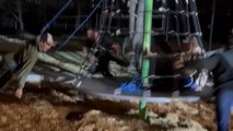 Boys create human slingshot with rope swing during late-night fun at park