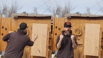 In this video, he strives to throw not one but two cards into a clothespin... but there's a twist... actually two!