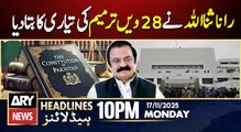 28th Amendment - Rana Sanaullah Statement | ARY News 10 PM Headlines | 17th Nov 2025