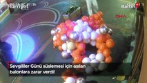 Sevgililer Günü süslemesi için asılan balonlara zarar verdi