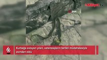 Arnavutköy'de sokak ortasına görülen yılan korku dolu anlar yaşattı