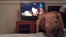 Quand il voit un chien à la télévision, ce chien a une réaction hilarante !