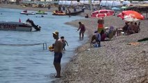 İSTANBUL'da sıcaktan bunalanlar Sarayburnu'nda denize girdi. Kimi kayalıklara uzanıp güneşlenirken, kimi de boğazın serin sularına atlayarak serinledi. Sıcak havada bunalanların rağbet gösterdiği yerlerden biri, Sarayburnu Sahili oldu. Sahilde deniz keyfi yaptı. Kimi masa kurup çayını içip yemek yerken, kimi güneşlendi. Bazıları da denize atladı. "BURADA İNSANLAR UYGARCA, KENDİ GÖNÜLLERİNCE EĞLENİRLER" Halit Tekin, "Buradaki arkadaşlar beş vakit namazını kılan arkadaşlar. Öbür tarafta da arkadaşlar bize saygı gösteriyorlar, içtikleri halde biz namaz kılarken içkilerini bırakırlar, müziğini kapatırlar. Burada uygarca insanlar kendi gönüllerince eğlenirler. Hem güzelce ibadetimizi yapıyoruz, Allah'ın ayetleri sadece Kur'an ı Kerim'de değil, bu deniz de Allah'ın ayetidir, bu gök bulut da Allah'ın ayetidir. Bu güneşimiz de Allah'ın ayetidir. Çanakkale'den girdim, Adana'dan çıktım bütün koyları gezdim. Ama buranın verdiği tadı hiçbir yer vermiyor" dedi. Haber