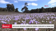 Yaylalar, baharın habercisi çiğdem çiçekleri ile renklendi