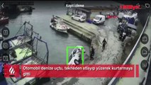 Otomobil denize uçtu, tekneden atlayıp yüzerek kurtarmaya gitti