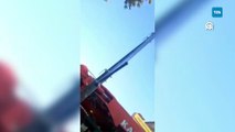 Operatörün üzerine düştü! Yıkım çalışması sırasında korku dolu anlar