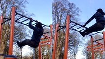 A man exercising in a superhuman manner can be seen in this amazing video.