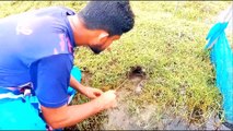 Amazing to find a big crab in a hole caught with his bare hands