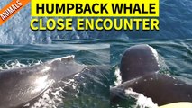 This gripping underwater footage shows Chérine Baumgartner fearlessly swimming in an ocean full of members of a whale family.