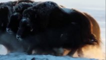 Animals fight Wolves vs Musk oxens