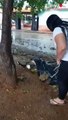 This heartwarming footage shows Jeniree filming a guy (with her) as he rescues an injured puppy.