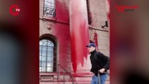 İklim aktivistleri Finlandiya parlamento binasına sprey boya sıktı