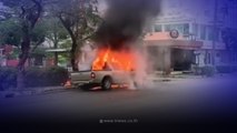 นาทีระทึก ! ไฟไหม้รถตู้โดยสาร เปลวไฟพุ่งพรวด วอดทั้งคัน