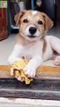 Cute puppy eating Bread