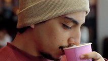 Close-up of a young man drinking coffee