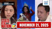 - Meralco: P0.3907/kWh ang taas-singil ngayong Setyembre/P57.18 na palitan ng piso kontra-dolyar kahapon, panibagong record-low - Ilang palengke sa Metro Manila, walang tindang puting sibuyas dahil sa mahal na presyo/Mga tumpok-tumpok at tingi-tingi, mas mabenta ngayong mahal ang bilihin - Maleta ng isang social media influencer, ninakawan - Mga bayan ng Surallah at Tampakan, isinailalim sa State of Calamity dahil sa matinding baha/Ilang residente, tinatamaan na ng mga sakit sa balat dahil sa baha - Weather Update today: Sept. 9, 2022 - Ilang improvised deadly weapon, nadiskubre sa inspeksyon ng mga selda sa Manila City Jail - Mga kasong administratibo at kriminal, inirekomenda laban sa 4 na pumirma sa SO4 - Pilipinas, kinilala ng World Travel Awards bilang finest travel and tourism industry sa Asya - Mga putahe ng balat ng baka at baboy,tampok sa "Pinas Sarap" bukas, Sabado, 6:15pm dito sa GTV - Farm manager at head ng security sa Manila Arena, kinasuhan ng DOJ dahil sa pagkawala ng mga sabungero - Mga paghahanda para sa Traslacion ng Nuestra Señora De Peñafrancia at El Divino Rostro patungong Naga Metropolitan Cathedral, kasado na - Mga guro, bibigyan ng P1,000 incentive bilang bahagi ng National Teachers' Month - NCAA SEASON 98, magsisimula na bukas sa Kapuso Network - Magpinsan, sugatan matapos gulpihin ng mga kaklase na nag-ugat daw sa hamunan - Halos 10,000 trabaho sa Singapore, alok sa mga Pinoy - Ysabel Ortega, ipinasilip ang kanyang future home in the City/Claudine Barretto, Katrina Halili at Gladys Reyes, mapapanood sa "Tadhana" bukas, 3:30pm sa GMA/Send-off concert ng Ben&Ben, itinakda sa Dec. 16, 2022 - Pangulong Bongbong Marcos at Chinese Pres. Xi, gustong paigtingin ang Bilateral Cooperation ng Pilipinas at China - Pekeng dentista, arestado sa Pangasinan - Pangulong Bongbong Marcos, nakiramay sa pagpanaw ni Queen Elizabeth II - Mga makikiramay sa pagpanaw ni Queen Elizabeth II, papayagan maglagay ng bulaklak sa British Embassy - Mga parol at iba pang Christmas Decor, mabenta na
