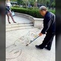 Ce que fait cet artiste avec de l'eau sur le sol est merveilleux