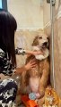 My dog taking full cleaning shower