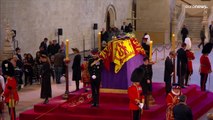 Les huit petits-enfants de la reine Elizabeth II, âgés de 14 à 44 ans, se sont recueillis ce samedi soir autour du cercueil de la souveraine, à l'occasion d'une veillée funèbre à Westminster Hall.