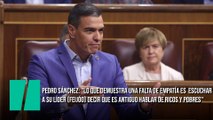 Pedro Sánchez: "Lo que demuestra una falta de empatía es escuchar a su líder (Feijóo) decir que es antiguo hablar de ricos y pobres"