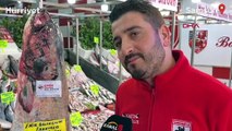 2.55 metre boyunda 98 kilogram ağırlığındaki yayın balığı tezgahta