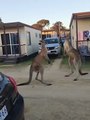 Avustralya'da iki kanguru sokak ortasında kavga etti