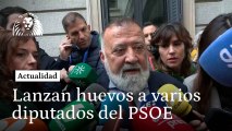 Un grupo de personas lanza huevos e increpa a varios diputados socialistas antes de la investidura