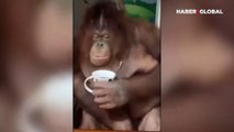 Keyfine düşkün maymunun insansı tavırları gülümsetti