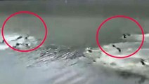 İki su samuru ailesinin arasında çıkan büyük kavga kamerada