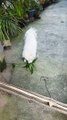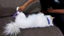 This black dog is white by putting it in the washing machine