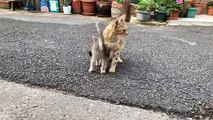 Cute hungry kittens living on the street are waiting for me