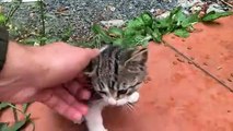 Hungry kitten meows for mother cat and food is so happy