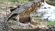 Crocodile Attacks Boat Anchored to Shore