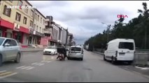 Ümraniye'de hafif ticari araç sürücüsüyle motosikletli arasında şiddetli kavga! O anlar kamerada