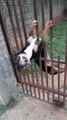 Dog Trying to Break Through Gate Gets Stuck Upside Down