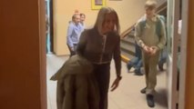 Her hand (the one holding the tube) starts shaking as she shows her husband the positive result. And that's when the parents-to-be share an endearing "we did it!" hug.