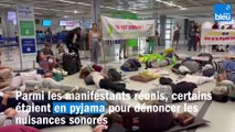 Aéroport de Nantes: manifestation en pyjama contre le nuisances du trafic aérien