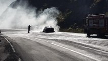 Eskişehir'de seyir halindeyken alev alan otomobil kullanılamaz hale geldi.