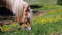 adorable horse eating pretty flower