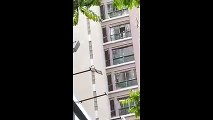 Mujer lanza dinero desde su balcón