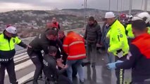 İstanbul'da bir şahıs 15 Temmuz Şehitler Köprüsü'nde intihar girişiminde bulundu. Polis ekipleri şahsı ikna edemeyince devreye giren itfaiye eri, şahsı su sıkarak etkisiz hale getirdi.