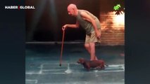 Yaşlı sahibinin yürüyüşüne ayak uyduran köpeğin merhameti izlenme rekoru kırdı