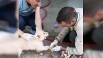 Ayakları asfalta yapışan yavru köpek böyle kurtarıldı