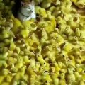 Ce chat prend un bain de poussins... Adorable